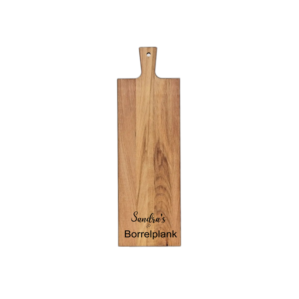Ben jij op zoek naar een mooie rechthoekige tapasplank? Tapasplank St. Tropez is een prachtige langwerpige plank, gemaakt van duurzaam beukenhout en heeft een aantrekkelijke warme kleur. Het is de ideale basis voor een selectie van heerlijke hapjes. Het allerleukste van deze plank is, dat jij je eigen persoonlijke tekst kan laten toevoegen. Of wat dacht je van een borrel- of tapasplank met een mooi logo? Of het nu gaat om een verjaardag, jubileum, relatiegeschenk of gewoon een gezellige avond met vrienden, deze tapasplank is altijd het ideale cadeau!