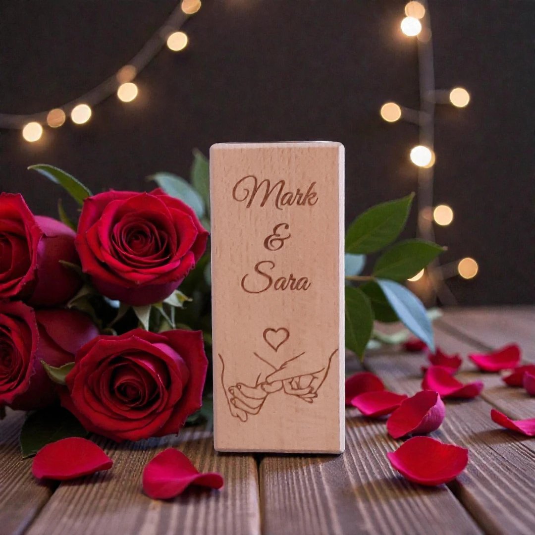 Deze houten kaarsenhouder is een prachtig en persoonlijk cadeau voor koppels. De houder wordt gegraveerd met een subtiel en liefdevol ontwerp van een man en vrouw die elkaars hand vasthouden. Een symbool van verbondenheid, liefde en samen zijn.