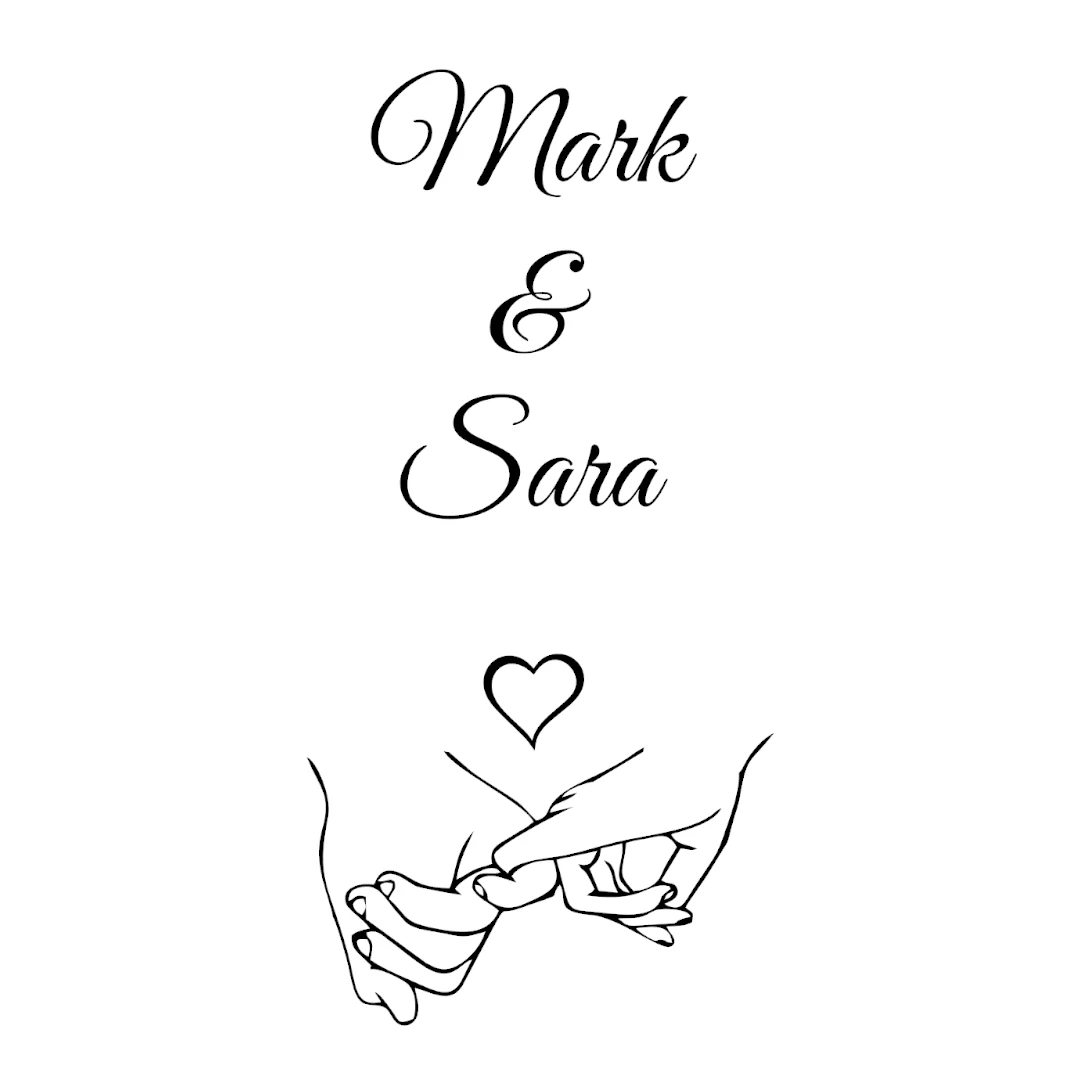 • Personaliseren: Het “holding hands” ontwerp geeft een warme, romantische uitstraling die je compleet maakt door het toevoegen van namen