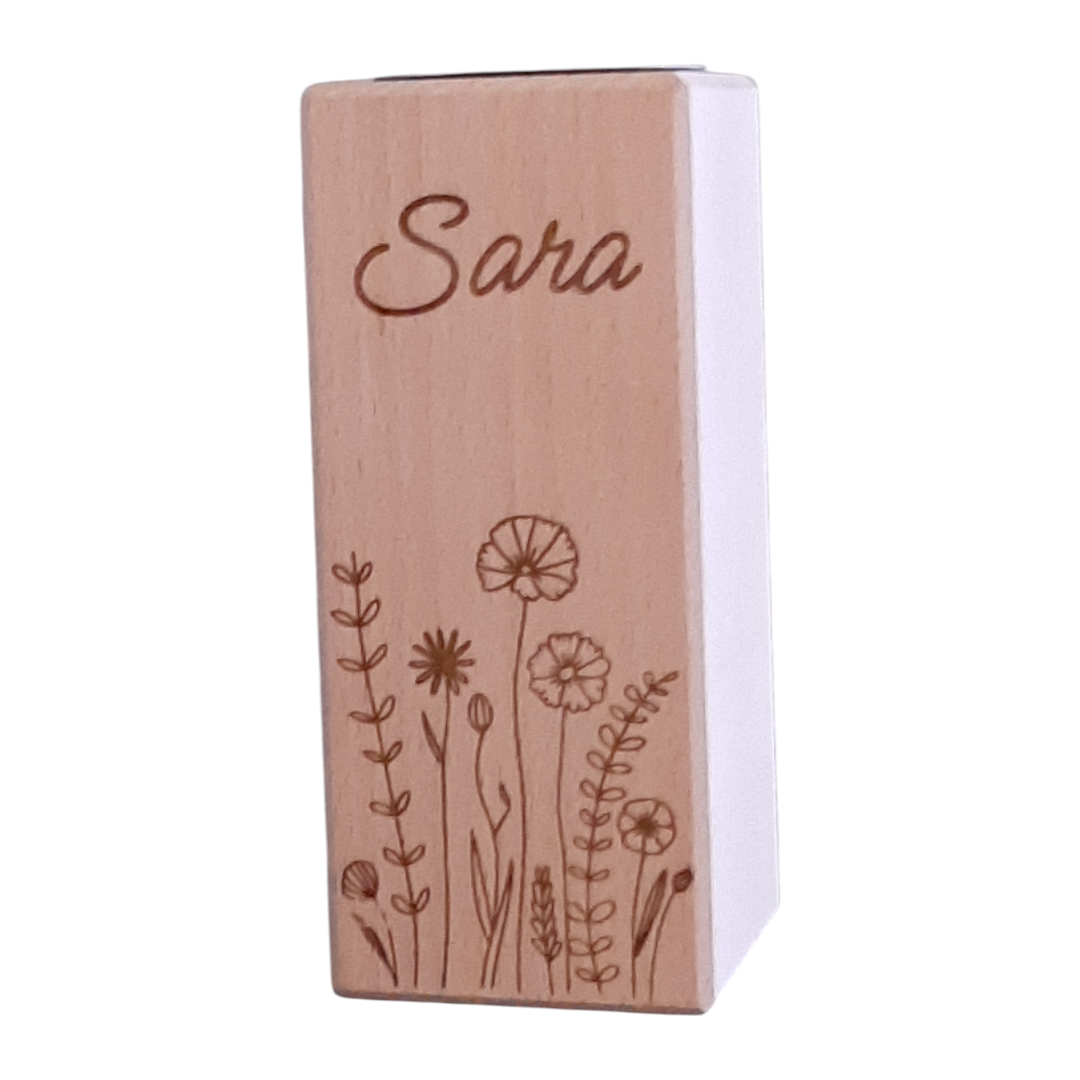 • Persoonlijke gravering met naam en afbeelding van bloemen