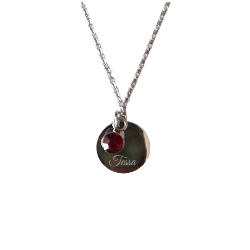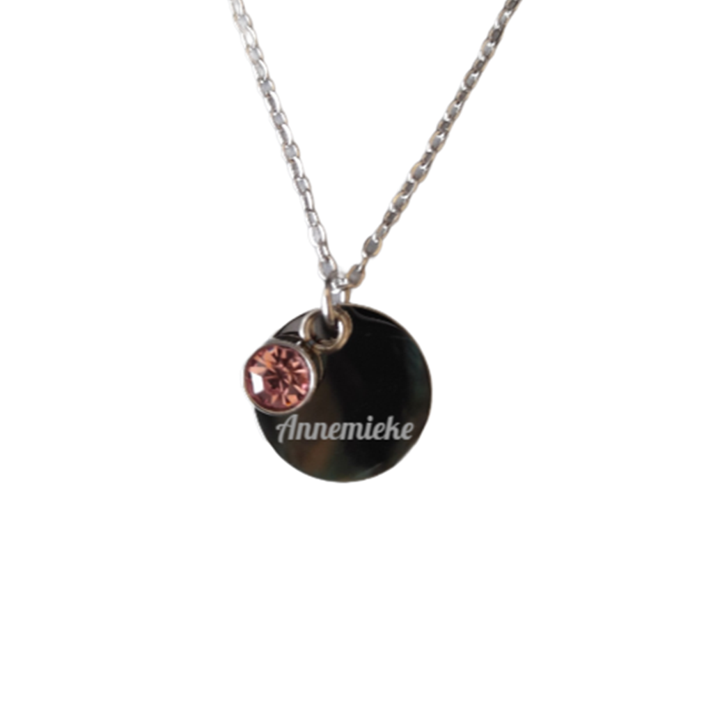 Prachtige ketting met een geboortesteentje, iedere maand heeft een eigen steen met een eigen bijzondere betekenis.  Voor deze birthstone-bedels gebruiken wij Zirkonia kristallen. De kleuren van deze kristallen zijn geïnspireerd op de steen die bij de maand hoort. Creëer een eigen unieke set door deze ketting te personaliseren met een naam, datum, vingerafdruk, initiaal, een klein tekentje zoals bv. een hartje etc.