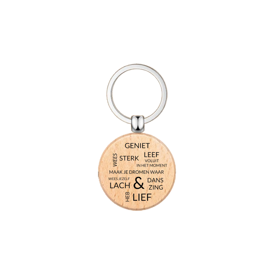 Deze houten sleutelhanger is een tijdloos accessoire dat zowel stijlvol als functioneel is. Deze sleutelhanger is met zorg vervaardigd uit hoogwaardig hout en voorzien van een persoonlijke gravure, waardoor elk exemplaar uniek is.
