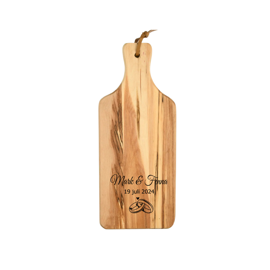 Til jouw borrelmoment naar een hoger niveau met deze elegante gegraveerde borrelplank van duurzaam rubberwood. Deze langwerpige borrelplank heeft een natuurlijke houtnerf, een warme uitstraling en maakt daarmee elke plank uniek. Het allerleukste van deze plank is, dat jij je eigen persoonlijke tekst kan laten toevoegen. Een borrelplank graveren, ideaal als cadeau voor verjaardagen, jubilea, housewarming, relatiegeschenk of natuurlijk gewoon voor jezelf.